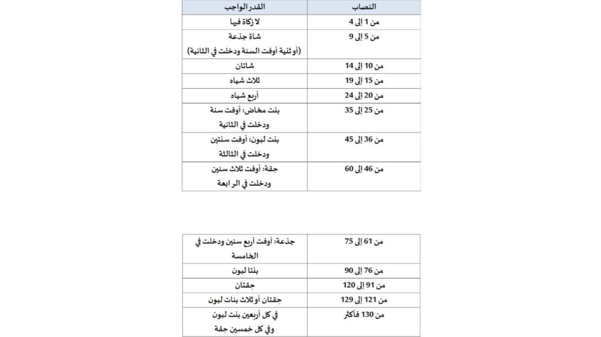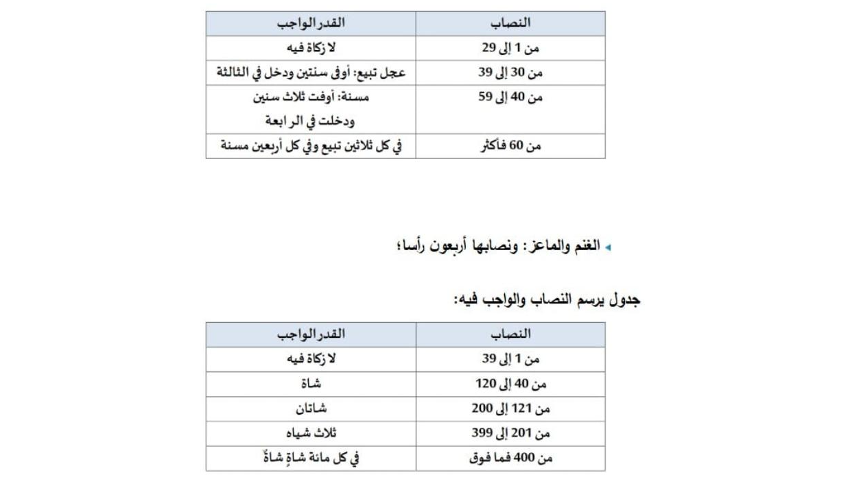 الثروة الحيوانية: تجب فيها الزكاة بعد مرور العام، وحول (عام) النسل في الماشية حول (عام) الأمهات.